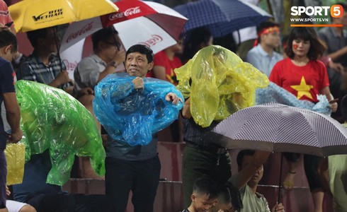 - Cơn mưa to không làm các fan Phú Thọ nản lòng. Họ sẵn sàng đội mưa để được theo dõi Tiến Dũng và các đồng đội. Ảnh: Sơn Tùng.